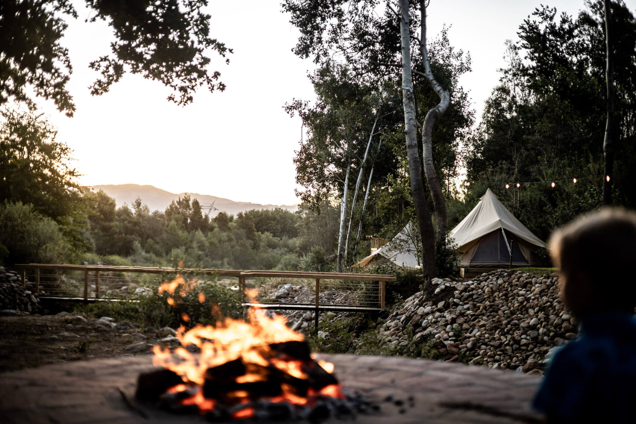 The Mountain Meadow Camp offers a secluded escape like no other. Cross a unique wooden bridge over the flowing river to reach your private retreat. Surrounded by nature, this peaceful camp lets you unwind in total privacy, with stunning river views.